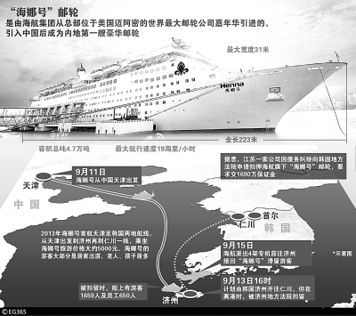 “海娜号”隶属于海航旅业控股集团有限公司,原计划于当地时间13日16时由韩国济州开往仁川。12日,与海航存在债务纠纷的沙钢船务有限公司(香港)以法律纠纷为由,向济州地方法院申请扣押船舶。济州地方法院裁定扣押“海娜号”。