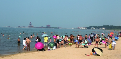 蓬莱,自古就有人间仙境和山海名邦的美誉。盛夏时节,我们踏上这片土地时已是深夜两点多,次日匆匆吃过早餐,便想着去看蓬莱阁。从下榻的宾馆出发,不到一刻钟的车程,我们便来到了城北丹崖山,看到了凌空欲飞的蓬莱阁。跟随如织的人流好不容易爬上了阁楼,但见这里山海相依,风光旖旎。然而,由于季节和气候不是时候,我们在蓬莱的几天里终究没能亲眼见到海市蜃楼奇观。