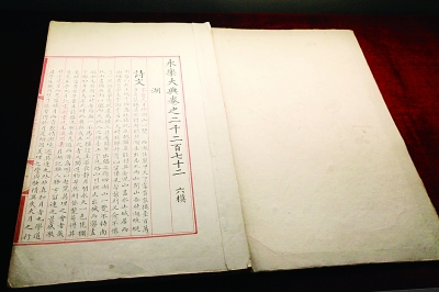 《永乐大典》成书于明永乐六年(1408年),共11095册、22877卷、3.7亿字,是中国古代最大的一部类书。它载录了我国上自先秦、下迄明初约8000种古代典籍,其中许多典籍今已失传,多赖此书才得以流传。明嘉靖年间,曾摹录一套副本。如今,永乐年间写录的《永乐大典》正本早已杳无踪迹,副本也在兵燹火厄中陆续散失,全球仅存400余册。