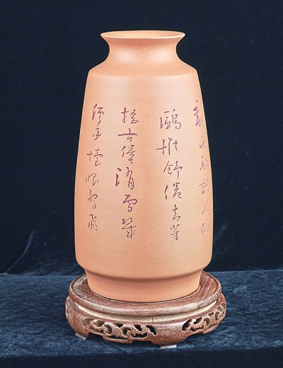 李多宽善于兼收并蓄,在江西、江苏工作之时,他虚心向工艺美术家们求教,熟悉并掌握材质与工艺,将书艺与瓷器、紫砂的质美巧妙结合,在烧制过程中,刻在瓷器与紫砂壶上的书艺不但没有折损,反而与器皿相得益彰,书法展上陈设的展品得到行家们的一致赞叹。