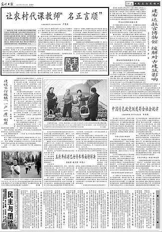 记得那是2007年3月间,我编了一篇民进中央严隽琪主席等十三名政协委员的“两会”联名提案——《关于当前农村代课老师的待遇和安置问题》,刊发在3月29日的《民主与团结》版头条,题为《让农村代课教师“名正言顺”》。时隔大约两周的一天,我正要去报社食堂吃午饭,一层总台打来电话说,陕西有人找。