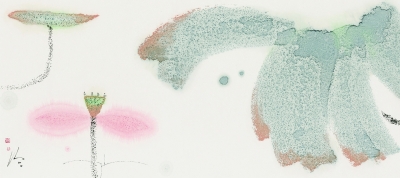 早年陈家泠以人物画享誉画坛。在画坛内外一致认可并看好其画风时,陈家泠却又以花鸟画为突破口,开始探索新的技法。他的荷花图,利用宣纸和水墨的晕化效果,营造出空灵、淡雅、极简的画境。他选取特别适合于新画风的材料,其绘画意境既是全新的,洋溢着时代气息和现代抽象的构成意趣,也是古老的,鲜明地流露出老庄哲学的人生态度和审美取向。