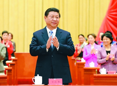 10月28日,中国妇女第十一次全国代表大会在北京人民大会堂开幕。这是中共中央总书记、国家主席、中央军委主席习近平在主席台向与会代表鼓掌致意。新华社记者 马占成摄