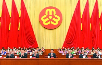 10月28日,中国妇女第十一次全国代表大会在北京人民大会堂开幕。习近平、李克强、张德江、俞正声、刘云山、王岐山、张高丽等在主席台就座,祝贺大会召开。新华社记者 马占成摄