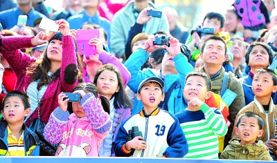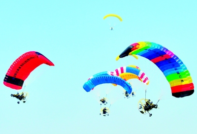 “2013中国保定自由飞行周”日前在河北保定开幕,这不仅是一场大型的、综合性的飞行主题活动,更是铸造梦想、体验飞翔的最佳空间与载体。26日至27日是飞行周的公众开放日,在保定江城机场,包括固定翼轻型飞机、直升机、动力三角翼、轮式动力伞、单人动力伞、热气球等30余架(具)航空器先后升空,表演炫目的飞行特技,引得观众啧啧称奇。 尹晓龙摄/光明图片