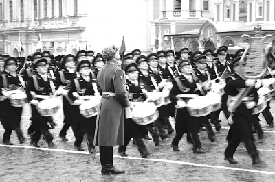 11月7日,在俄罗斯首都莫斯科,参加阅兵活动的军乐团方阵走过红场。当日,莫斯科红场举行复古式阅兵,纪念1941年红场阅兵72周年。1941年11月7日,苏联红军在卫国战争最艰难的时刻于红场举行了盛大的阅兵仪式。参加阅兵式的部队在阅兵完毕后直接开赴前线与德军作战。 新华社发