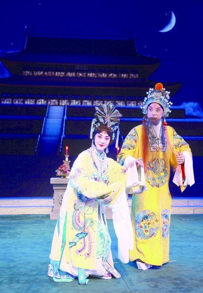 中国戏曲学院新戏《梅兰霓裳》近日在国家大剧院上演,参加第六届“春华秋实——艺术院校舞台艺术精品展演周”。该剧改编自梅兰芳大师的《太真外传》,将演员表演、虚拟影像、舞台置景、立体音效有机结合,实现了梅派艺术与现代科技相携的视听新体验。由梅葆玖任艺术指导,周龙导演,李胜素、于魁智、舒桐等主演。图为该剧演出剧照。王梓丞摄