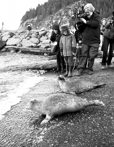 11月20日,在加拿大温哥华附近的波托湾海岸,头上安装有卫星追踪器的港海豹返回大海。当日,温哥华水族馆下辖的海洋动物拯救中心将一批伤愈的港海豹放回海洋。海洋动物研究人员在放生的港海豹身上安装了卫星追踪器,以研究它们的生活习性。 新华社发
