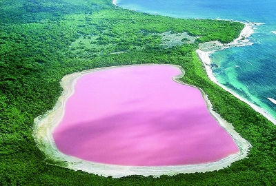 希勒湖位于澳大利亚西部,它令人吃惊的颜色仍然是一个谜。科学家已证明这并非由于湖底藻类的存在,却也不能解释它为何呈现出如此鲜艳的粉红色。(摄影,选自微信)