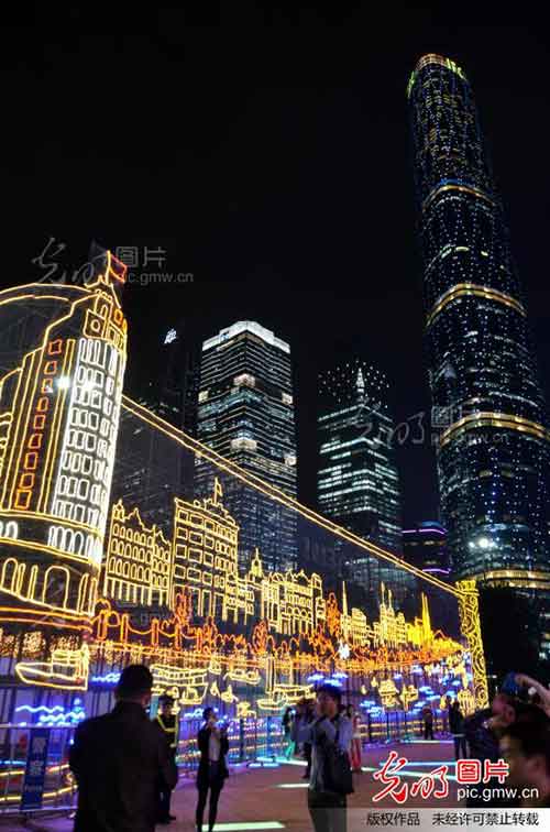 日前,2013广州国际灯光节开幕,受到市民欢迎。为期一个月的灯光节,在广州花城广场和上下九步行街同期亮灯,大大丰富了广州市民的业余生活。 许建梅摄/光明图片
