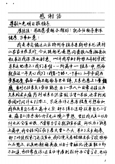 然而中考前,已经要靠拐杖走路的父亲无奈地告诉我,无论我是否考上高中,都不可能读书了。他的无奈可想而知。看着父亲被病魔折磨却没钱治疗,哪怕几块钱的止疼药都买不起,我心里又何尝不难过。