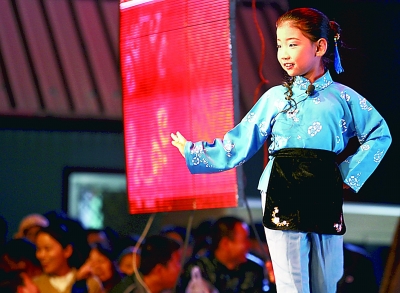 日前,山东省广饶县大王镇举办了大舞台活动月。在活动期间,该镇97个村举办了丰富多彩的群众性文化活动。图为8岁的小姑娘蒋晓涵正在镇文化广场演唱吕剧《红嫂》选段。本报记者 刘新武摄