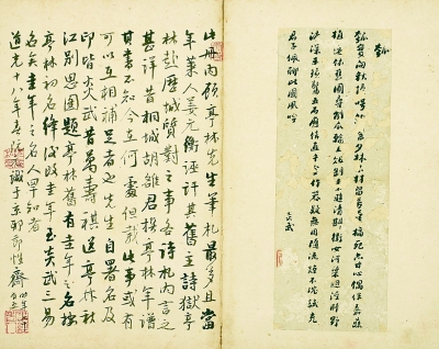 读其文,览其书,赏其笺,尺牍“信手任心,谑浪笑傲,无所不可”,从中亦可见书法艺术和雕版刻印技艺的发展。此次展出的尺牍中,难得一见的书法和形制多样的笺纸让观众大饱眼福。如《颜氏家藏尺牍》中清人李鸿霔手札用莲瓣形笺,清人谭之遂手札用手绘彩笺,清人王韬手札则写于名刺之上。