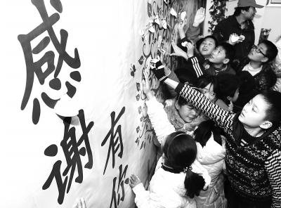 12月5日是“国际志愿者日”,合肥市芜湖路街道南园社区“四点半课堂”的小朋友们为前来支教的中科大芳草社志愿者送上爱心祝福,感谢志愿者多年来的义务支教活动。 新华社记者 刘军喜摄