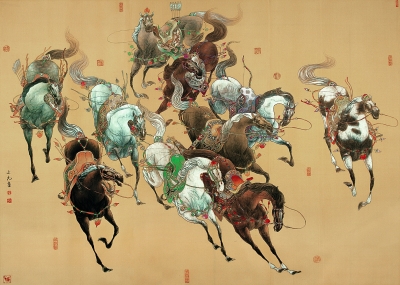 日前,“扬鞭·奋蹄——赵文元鞍马画新作展”在中国美术馆开幕。此次展览共展出46幅作品,其中工笔鞍马创作是其重点,22米的巨幅作品《历代宝马图》也亮相京城。