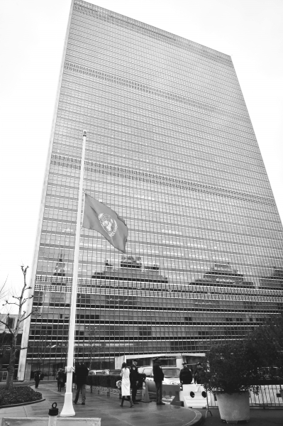 12月6日,纽约联合国总部降半旗,为5日逝世的南非前总统曼德拉志哀。 新华社发