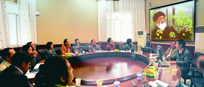 付东辉一边播放幻灯片,一边向与会专家介绍“贵野A不育系”的特点、目前的鉴定情况及合作进行的新品种选育和特殊优异材料研究的进展。