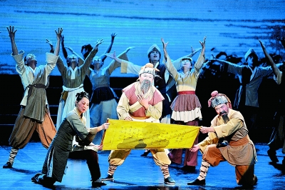 本报记者王国平、胡晓军报道 情景主题歌舞《记忆庐陵》日前亮相北京保利剧院。《记忆庐陵》由江西省吉安市采茶歌舞剧院和井冈山大学附属艺术学校共同出演。整场演出共分为“喊船”“春晖”“书院”“珍陶”“正气”“永慕”等6个篇章,将吉安的农耕、民俗、书院、陶瓷文化进行艺术化的处理,并突出了文天祥身上所蕴藏的忠烈义举的精神力量。图为演员们在《记忆庐陵》中表演。 新华社记者 孙瑞博摄