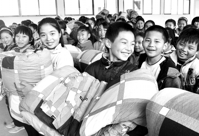 最近,江西省龙南县汶龙镇中小学的百名贫困学生喜领“爱心棉被”。该县交通局“三送”工作队在走访中了解到,部分寄校生冬天里没有棉被,随即购买了百床棉被赠送给当地学生,用爱心温暖贫困学子心。 本报记者 刘新武摄