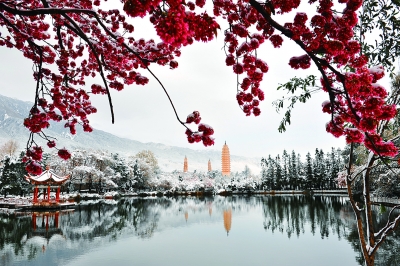 近日,云南大理迎来降雪天气,古城出现罕见雪景。新华社发(王军摄)