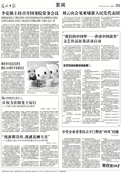 本报北京12月18日电(光明网记者田文姝)为更好地阐释、宣传和弘扬中国梦,由中宣部文艺局、人民网、新华网、光明网联合举办的“我们的中国梦——讲述中国故事”文艺作品征集活动于12月18日正式启动。