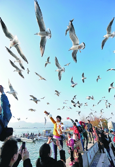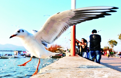 昆明日前统计来此越冬的红嘴鸥,经158名工作人员在62个点同步统计,今年冬天到昆明越冬的红嘴鸥数量约39230只,创历年之最。