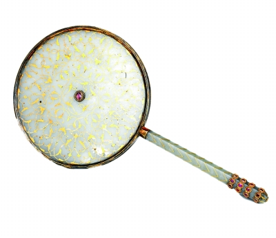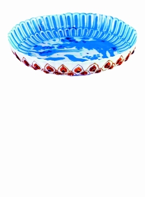 展品中,一件明代青花壶,加上了尖锥形银盖,雕刻了植物状和几何图案的纹饰,用螺母安装在壶口。另一件明代的青瓷盘,则镶嵌了两排叶状金线和红宝石,成了以苏丹为首的奥斯曼王朝喜爱的珠宝盘。在奥斯曼艺术极为辉煌的时期,将珍贵珠宝布置在中国瓷器上,成为一种独特的艺术。