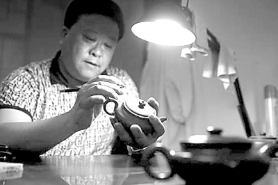 刘曰明在研究紫砂壶工艺。资料图片