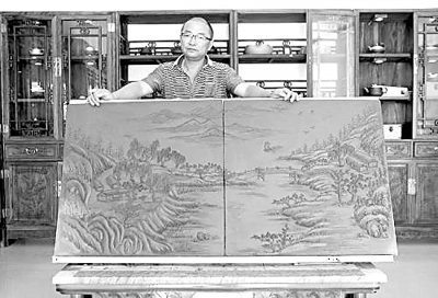 沈德应展示紫砂浮雕作品。资料图片