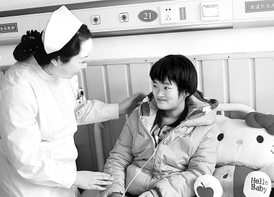 日前,“寻找最需帮助的癌症患者”公益活动纪念大会在河北沧州举行。该活动由沧州中西医结合医院、沧州晚报社等单位联合主办,自2013年7月开展以来,已经救助了30名极为贫困的沧州籍癌症患者,减免治疗费用130万元。图为12岁的活动受益者王蕊在接受护士的医疗指导。本报记者 华挺摄