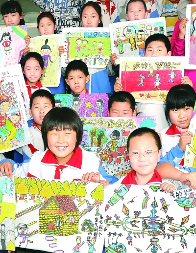 12月24日,山东省沾化县第一实验小学四年级一班的同学们在展示“我的中国梦”绘画作品。该校结合“我的中国梦”教育活动,组织开展“绘出我的中国梦”才艺展示活动,同学们用画笔描绘多姿多彩的梦想世界。 本报记者 郭俊锋摄