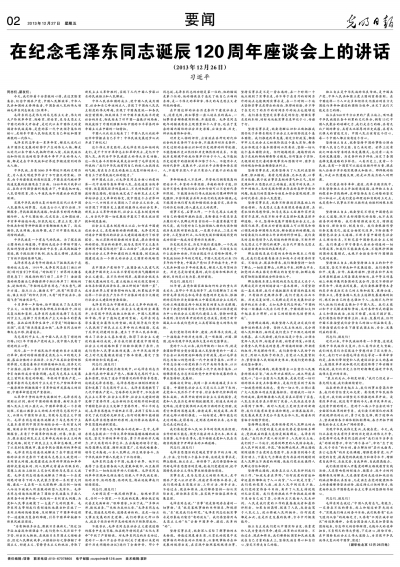 在纪念毛泽东同志诞辰120周年座谈会上的讲话