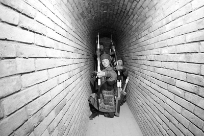 12月24日在河南省许昌市曹丞相府景区拍摄的曹操藏兵洞突击防御室。河南省许昌市曹丞相府景区的曹操藏兵洞目前布展工作已全部完成,计划于2014年元旦前向游客开放。曹操藏兵洞项目以历史传说为依托,其地下通道宛如迷宫,机关重重,游客可身临其境体验“探险之旅”。新华社发(牛书培摄)