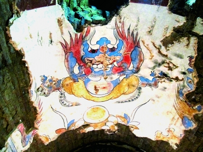 九原岗墓群位于忻州市制高点南缘地带,今年初春发现墓葬被盗后,山西省考古研究所立即展开抢救性发掘。该墓为长方形斜坡墓道砖砌单室墓,坐北朝南。由墓道、甬道、墓室3部分组成,南北总长约40米。甬道两壁及顶部均绘有壁画,壁画损毁严重。墓室四壁墙体原均有壁画,已被大面积盗揭,仅顶部星象图保存较好,东壁上方还残存有三足乌的形象。