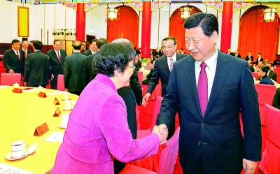 茶话会上,习近平等来到各界人士中间,同大家亲切握手,互致问候。随后,部分全国政协委员和文艺工作者表演了精彩节目,与会者共叙友谊、同迎新年,会场气氛十分热烈。