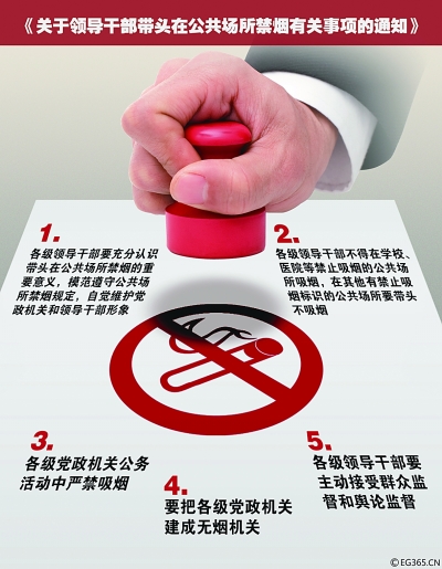 “此举必将对公款消费烟草制品等产生遏制和警示作用。”中国控烟协会副会长许桂华认为,领导干部在公共场合禁烟起到了一种示范效应,有利于形成更多的无烟单位。