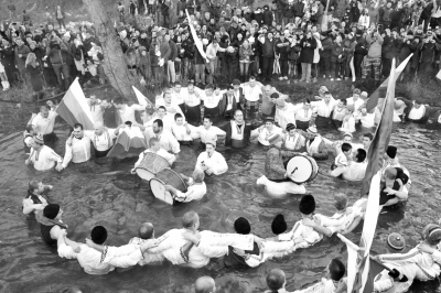 1月6日,在保加利亚的卡洛费尔市,当地的青壮年男子在冰冷的河水中起舞。当日,保加利亚迎来传统节日——约尔达诺夫日,这天也是东正教的主显节。人们聚集在卡洛费尔市中心的河岸两旁,强壮的男子在冰冷的河水中跳起传统舞蹈“霍洛舞”,祈祷一年身体健康。 新华社发