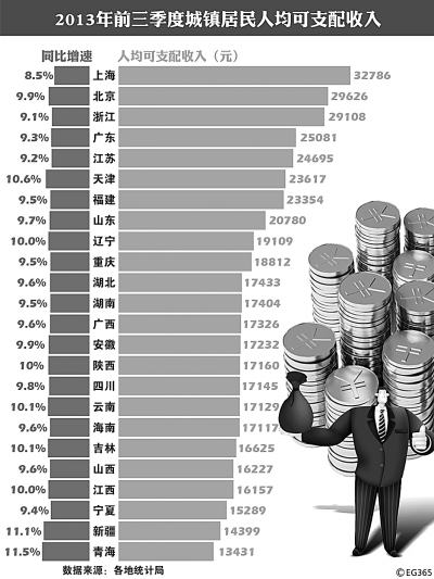 十八届三中全会提出,要紧紧围绕更好保障和改善民生、促进社会公平正义,深化社会体制改革,改革收入制度,促进共同富裕。收入分配关系着百姓的“钱袋子”,2013年前三季度,我国城镇居民人均可支配收入同比增长9.5%,农村居民人均现金收入同比增长12.5%。可不少人还在问,为什么自己的工资总赶不上物价上涨的脚步;为什么做同样的工作,自己的工资却没有别人高?