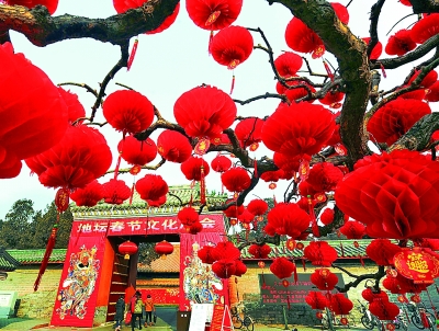 一月二十七日,北京地坛庙会环境布置工作基本完成。本届地坛庙会以“凤舞祥歌 福聚地坛”为主题,将于一月三十日至二月六日举行。新华社记者 公磊摄