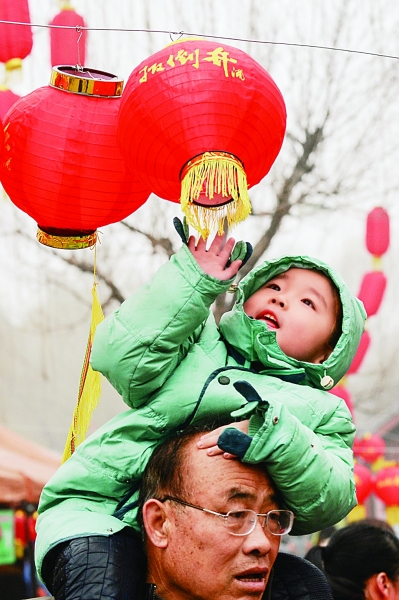 2月1日,在济南大明湖公园新春庙会上,一名小朋友在玩耍。 新华社记者 李贺摄