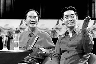 六龄童(左)和儿子六小龄童在京录制《艺术人生》(2004年6月19日摄)。被称作“南猴王”的著名绍剧表演艺术家六龄童31日晚以90岁高龄在浙江绍兴逝世。 六龄童原名章宗义,1924年生,6岁学艺得此艺名,是电视剧《西游记》孙悟空扮演者六小龄童(章金莱)之父。他专工武生,尤擅猴戏,是绍剧的代表人物之一,更开创了猴戏“活、灵”的南派风格,人称“南猴王”。章家是“猴王世家”,六龄童的父亲章益生是“赛活猴”,他的祖父章廷椿是“活猴章”。 新华社发(史春阳摄)