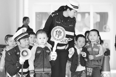 沈阳北站交警大队民警深入辖区幼儿园表演情景剧,为教师和儿童宣传交通安全知识。资料照片