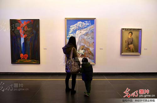 2月15日,“中华意蕴——中国当代油画巡展暨中国油画百年回望”在广东美术馆举行隆重的开幕仪式。该展是为配合中国国家画院油画院与中央电视台联合拍摄的大型文献纪录片《中国油画百年》盛大开机仪式而举办的国内巡展。图为观众在广东美术馆参观展览。许建梅摄/光明图片