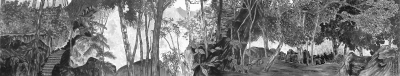 刘斯奋素以人物画见长,山水为近数年间开拓的新领域,然而他赋予山水作品的情怀,一如脱缰野马,那不可约制的热情,那无时不在的投入,至巨幅力作不断产生。从山水之清趣小品《翠谷春晓》《小园清话》,至峭壁连峰的《渡江云》《青山红树鹧鸪啼》,已见其自文人视觉的点景抒怀,递升至一种艺术家的宏观格局,一种纵览山河、笔走龙蛇的潇洒气度。及至近作《出尘图山水长卷》和《不凋》横幅巨制,已快速地步向圆熟浑厚、苍莽朴拙的心性修为的阶段。如以《出尘图》与《不凋》两画对照观之,其相类之处:构图上都是顶天立地,以黑当白;其架构则延绵衍生,于乌润苍莽之中,以一线灵虚之空白蜿蜒贯穿左右;其虚空处,或为山径,或为云水,或为溪谷,掩映于茂林山壑之中;是以精神为之而生,灵光为之而发,衬托出丰泽华滋的苍润风格。