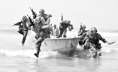 南京军区“硬骨头六连”官兵进行近似实战的登陆演习。 王圣贺摄