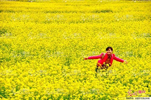 日前,江西省遂川县气温回暖,农村的田间地头油菜花竞相开放,游人纷纷而至,赏花观景,尽情享受那美好春光。肖远泮摄/光明图片