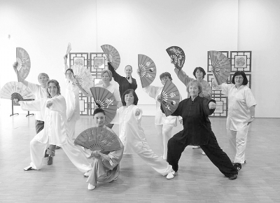 中国文化受到越来越多的德国人喜爱,图为德国民众在学习中国扇舞。 (资料照片)