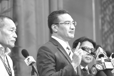 3月31日,在马来西亚吉隆坡,马来西亚代理交通部长希沙姆丁(中)在新闻发布会上讲话。马来西亚代理交通部长希沙姆丁31日在例行记者会上说,马来西亚总理纳吉布计划4月2日前往澳大利亚珀斯搜索前线,以获取搜救行动的第一手资料。 新华社发