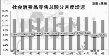 数据:据国家统计局统计,1—3月全国实现社会消费品零售总额62081亿元,同比增长12%,扣除价格因素,实际增长10.9%,比上年同期加快0.1个百分点。虽然增长数据仅有0.1个百分点,但在商务部新闻发言人沈丹阳看来,这个增长来之不易。
