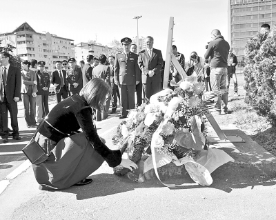 本报贝尔格莱德5月7日电(记者戚德刚)7日上午,中国驻塞尔维亚使馆在我驻前南斯拉夫被炸使馆遗址纪念牌前举行悼念活动,缅怀在1999年北约轰炸中牺牲的邵云环、许杏虎和朱颖3位烈士。张万学大使及使馆全体馆员,中资机构及留学生代表,塞尔维亚记协主席兼《政治报》主编莉娅娜·斯玛伊洛维奇,塞尔维亚国际广播电台、国家广播电视台、国家通讯社南通社等新闻机构的多名记者参加悼念活动并敬献花篮和花环,对为和平献身的中国同仁表达崇高的敬意和深切的缅怀。